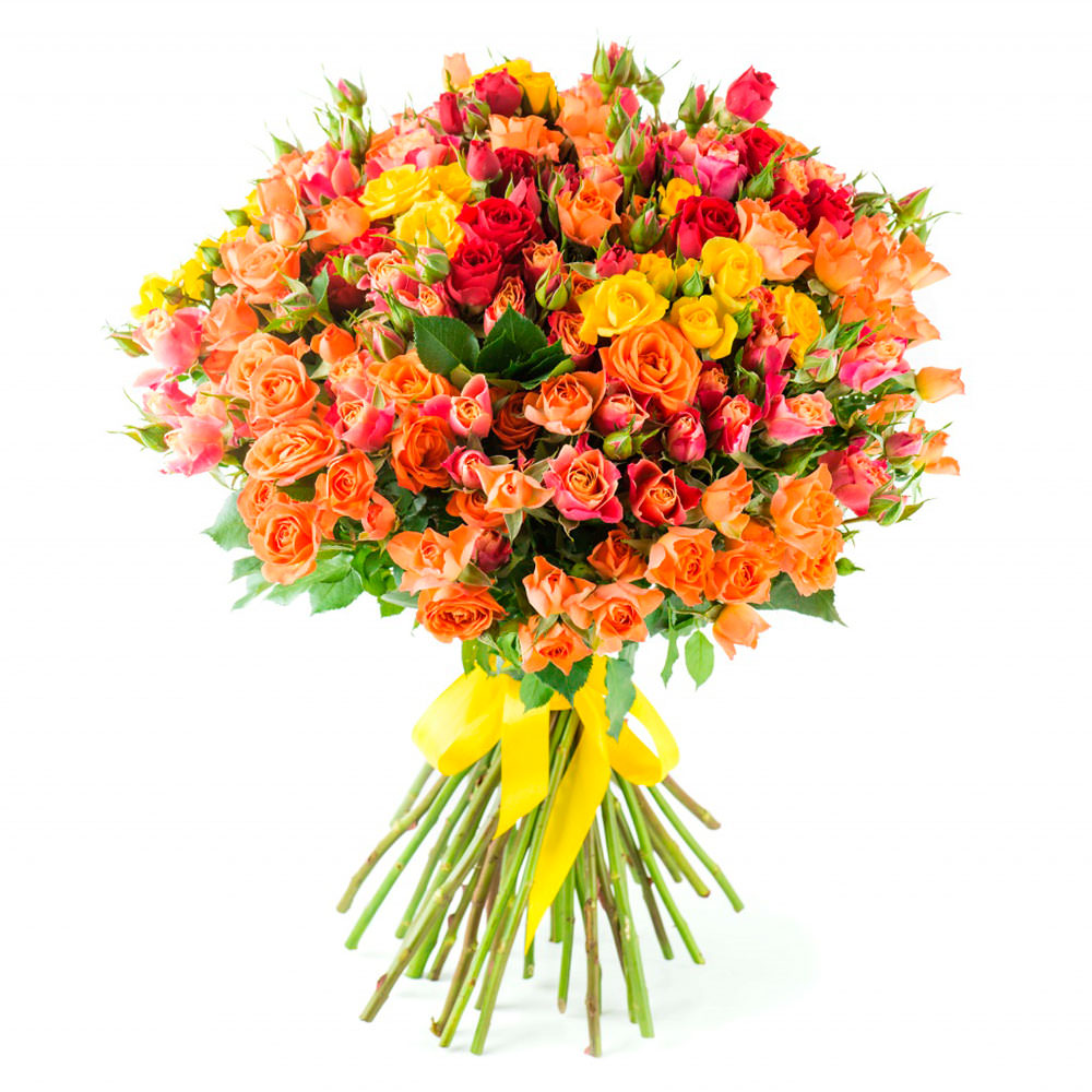 На фото представлен образец. Объем букета зависит от выбранного вами размера. Точное количество цветов и цветовую гамму вы можете уточнить у менеджера по телефону.